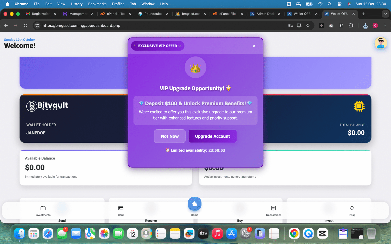 Experience the future of digital finance with BITVAULT QFS FCHAIN – a revolutionary cryptocurrency investment platform combining advanced wallet technology, automated ROI systems, and seamless blockchain integration. Built on robust PHP 7.1 architecture for maximum compatibility and performance.